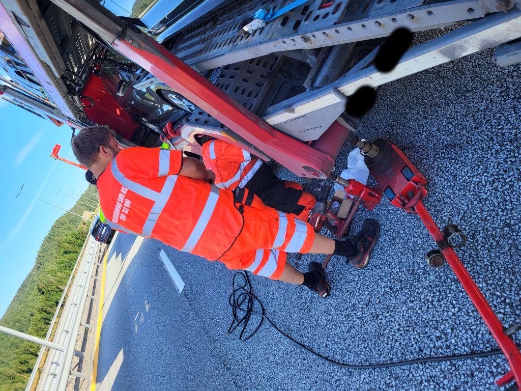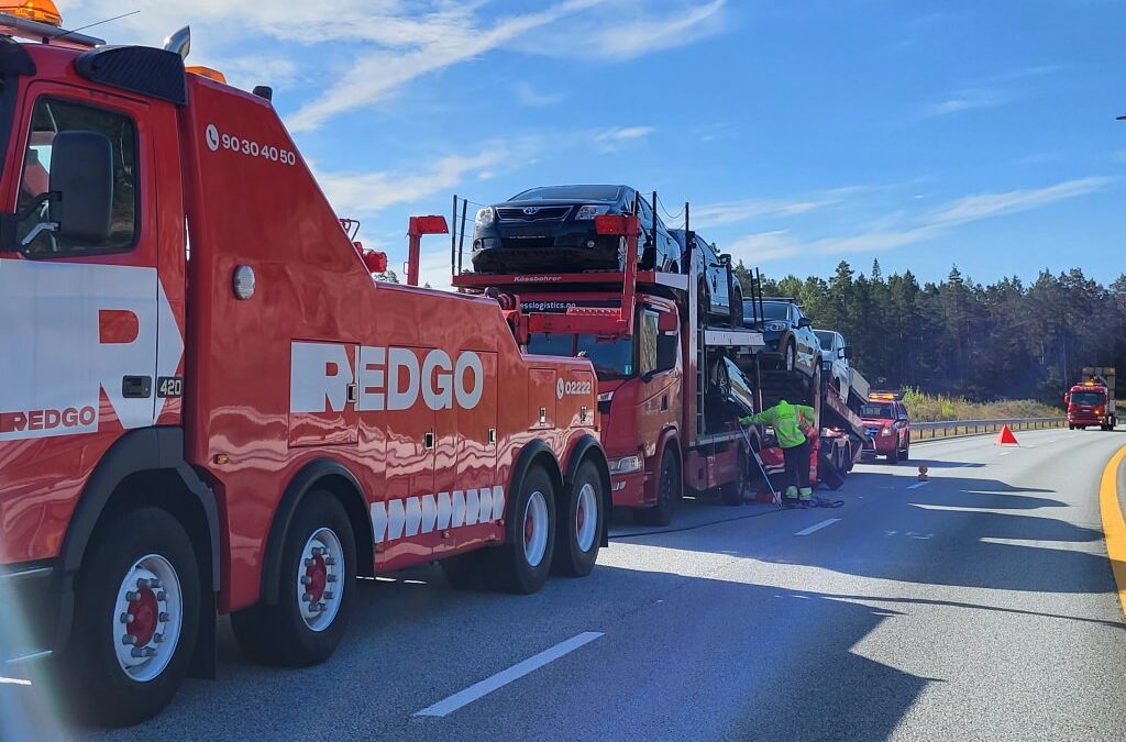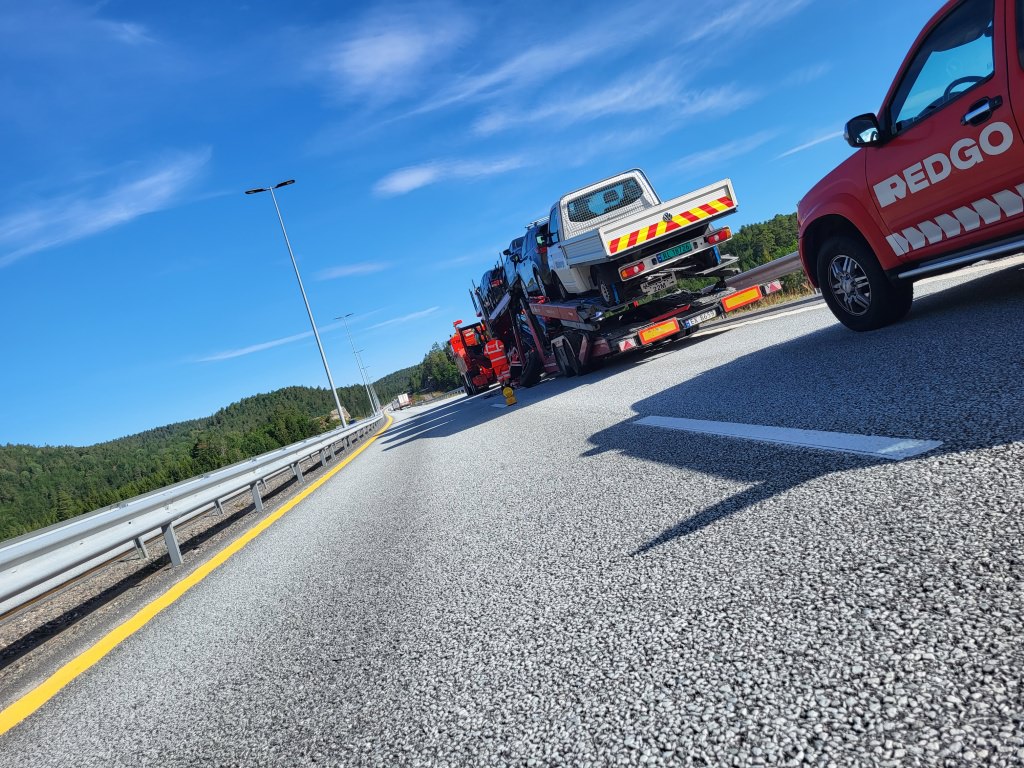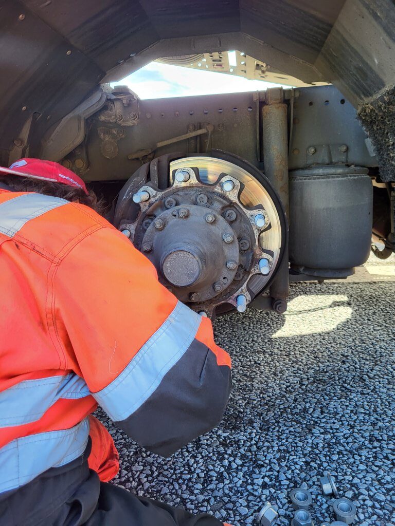 I juli 2023 rykket vi ut til et vogntog med løst hjul og knekte hjulbolter på E18 i Agder. Hjulboltene ble skiftet på stedet slik at kjøretøyet kunne fortsette reisen på en sikker måte.